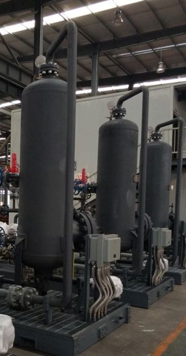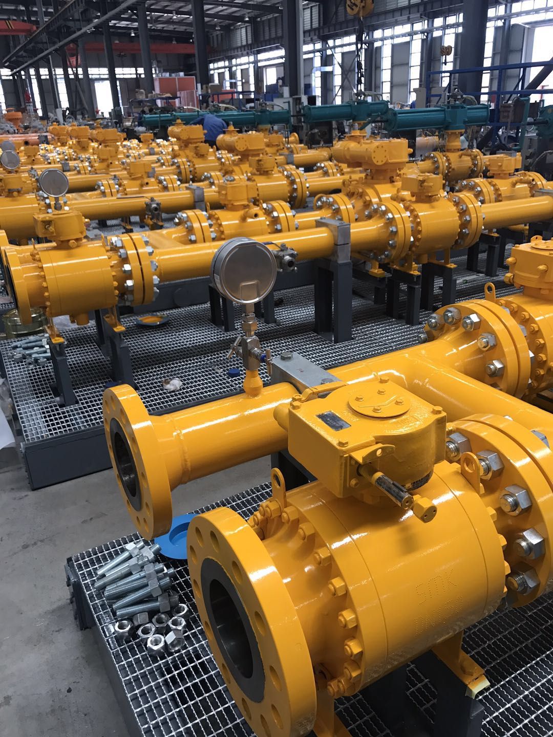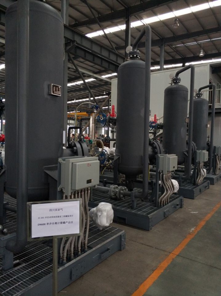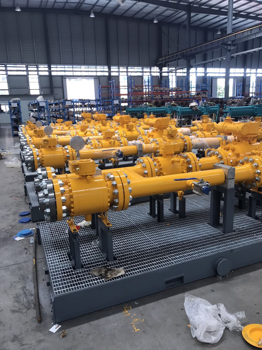 撬裝指一組設(shè)備(容器、泵、閥門(mén)、管道等)固定在一個(gè)角鋼或工字鋼制成的底盤(pán)上。可以相對(duì)方便的移動(dòng)?,F(xiàn)在的撬裝也包括將閥門(mén)、泵等設(shè)備安裝好了的一個(gè)整體式集合,與系統(tǒng)上其他設(shè)備連接時(shí),無(wú)需再在中間安裝閥門(mén)、儀表等設(shè)備,只需用管線(xiàn)聯(lián)通即可。 公司開(kāi)發(fā)的撬裝產(chǎn)品用于頁(yè)巖氣田開(kāi)采使用的各種設(shè)備撬裝。因頁(yè)巖氣開(kāi)采期較短,需要頻繁搬遷開(kāi)采設(shè)備,因此將常用的分離計(jì)量、脫水裝置、清管器等設(shè)備閥門(mén)集成在不同的撬裝上,便于搬遷。
