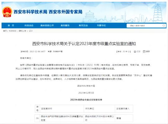 12月5日,西安市科學(xué)技術(shù)局印發(fā)《西安市科學(xué)技術(shù)局關(guān)于認(rèn)定2023年度市級重點(diǎn)實(shí)驗(yàn)室的通知》,經(jīng)依托單位推薦、專家評審、現(xiàn)場考察、網(wǎng)上公示等環(huán)節(jié),我公司申報(bào)的“西安市油氣田用耐蝕復(fù)合材料及裝備重點(diǎn)實(shí)驗(yàn)室”(以下簡稱實(shí)驗(yàn)室)獲批為西安市市級重點(diǎn)實(shí)驗(yàn)室。這是我公司首次申報(bào)并獲批的市級重點(diǎn)實(shí)驗(yàn)室,體現(xiàn)了我公司在應(yīng)用科學(xué)研究方面的不斷突破。